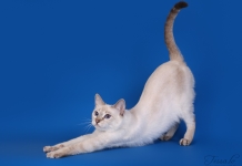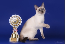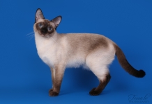 The phenotype of Thai cats is a peculiar beige body color combined with unusual blue eyes. Such coloring with darker markings on the head, ears, legs and tail is called acromelanism. This breed is unmodified, naturally bred.